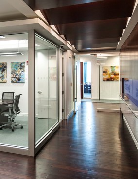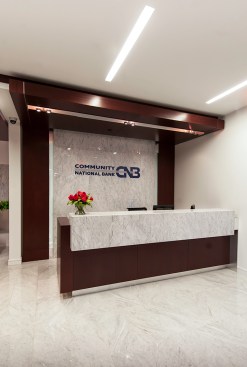 The new CNB Corporate offices in Melville, New York, reflect the new image of banking today. Efficient, modern and most importantly, customer-oriented, the design results had to accomplish these tasks and more in this 8,200 SF facility. Although the reception area has a very corporate feeling, the conference center and corridor in view of the reception area to the back workspaces is very modern and creative, toning down the corporate entrance. We opened up all the conference rooms to this corridor so customers and employees were always part of the ongoing activities doing away with the image of closed-door banking.