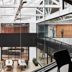 The 20,000 square foot space serves as a creative laboratory space featuring various flexible work areas, lofty common areas, meeting rooms, a commercial kitchen, and two bars. Inside, food scientists and beverage developers can collaborate and find inspiration for new ideas while working in open communal spaces or office pods, and private glass-enclosed conference rooms, all illuminated by natural light.