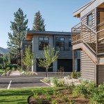 The units also accommodate the play-hard attitude of valley residents, incorporating extra deep garages for recreational equipment storage. The three buildings are sited to maximize views of the ski area and surrounding mountain ranges and allow for a tenant friendly interior motor court, with exterior open spaces and natural landscaping.