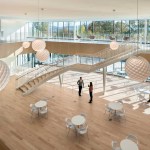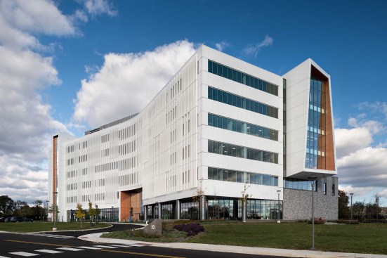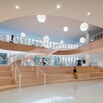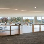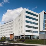 The new building for the Drexel University College of Medicine is located on a high promontory above a bend in the Schuylkill River, overlooking the City of Reading, Pennsylvania on the opposite bank. The site is highly visible from and has commanding views of the surrounding area in all directions. The shape and topography of this prominent site became a primary determinant in the form of the building. The curved shape allows the building to closely adhere to the eastern edge of the site, reflecting the curve of the railroad tracks and the river below. With a closer look at the aspirational and functional design choices, one will see changing pattern and flow of the river in the façade’s vertical fins, which are also acting as a shading device. The large gap in the atrium is representative of a pebble dropped in the river to create an opening.