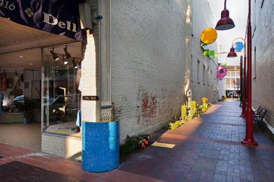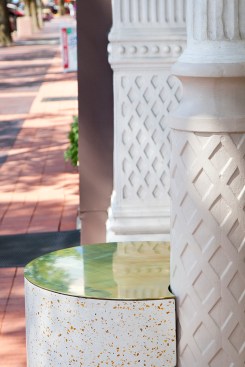 PRODUCTORA inserts a series of circular elements attached to building facades along Washington Street, allowing pedestrians a place of rest along the street in an unexpected moment of beauty. Each element interacts in a different way with the surrounding context, highlighting unique narratives of the social and spatial history of the streetscape. This work fits into the larger themes that PRODUCTORA explores using specific architectural interventions to re-define, re-organize, and give new meaning to the surrounding context.