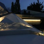 The top connects and envelopes the stairway from the pool down into the garden, the valuable private city green.