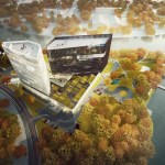 The site meant for design is located on the area of intersection of two urban axis systems. One of them is perpendicular to Volokolamskoe Highway, the other is perpendicular to the Skhodnya river. This condition exerted an influence on the architectural composition of the hotel complex. The hotel blocks are situated right along these axis. Moreover, their location relative to each other is made in the way that allows to have view on the Moskva and Skhodnya rivers water area from each room.