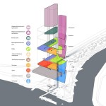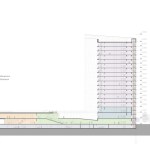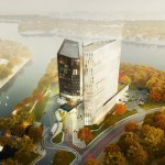 The inner сourt is arranged between the blocks on the stylobate roofing. The guests may pass from the court to the gallery – lobby that connects residential blocks with the restaurant, multifunctional hall, business center and the cafe. The reception lobby is located on the 1st floor for the arriving guests’ convenience. This solution makes easy the transport approach to the entrance and provides free entrance for disabled persons. It also helps to split the flows of the arriving and departing guests in order to provide more comfortable conditions for each group. The 1st floor entrance group is equipped with leisure areas, café and PC-café. Panoramic view on the Moskva river open from the restaurant windows. The restaurant is located on two levels: the upper one is used mainly by the hotel residents, the lower level has direct entrance from the street and can be used independently.