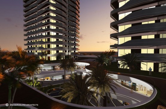 “Rose of a desert” is a complex consisting of apartments and commercial spaces. The design strategy and concept of this building being built in Oran comes through the study of the rose of the desert. The four different towers, each shaped like a petal, are positioned as though it is a rose opening up its beauty to the world. Is a 73 metre high residential tower located in Oran, which will include 318 apartments, a shopping Mall, Offices, a bicycles parking and an underground car parking with 659 spaces. A public indoor garden, which will present local vegetation and enable the residents to spend the day outdoor, will be situated in the commercial area. The building stands as a rock of the desert shape distinct from the surrounding towers and warehouses. Architecturally sculpted, the irregularities of the building’s balconies, use of glass and enormous cantilever create an impressive aesthetic.