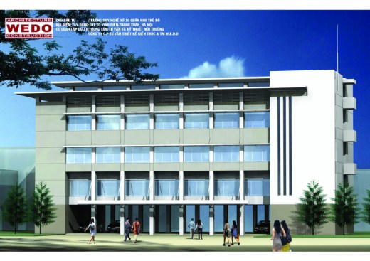 Công trình do WEDO thực hiện có tổng diện tích sử dụng lên đến 1966m2. Các hạng mục công trình bao gồm: 14 lớp học, dành cho 435 học sinh với tổng diện tích 566m2. 1 hội trường 200 chỗ rộng 169m2. Phòng nghỉ giáo viên 40m2. Các diện tích phụ trợ khác: 180m2. Sau khi hoàn thành, hạng mục thiết kế nhà học nghề lý thuyết đã trở thành điểm nhấn quan trọng trong tổng thể khuôn viên nhà trường.