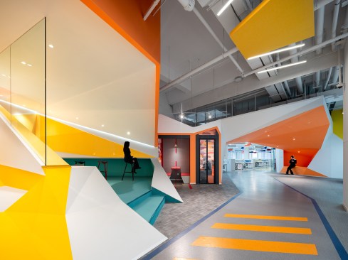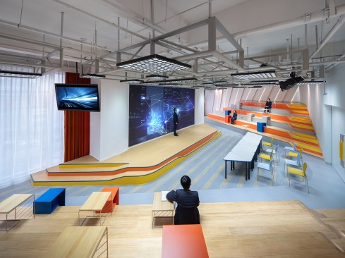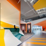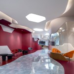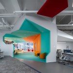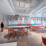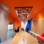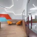 The blending of these two contrasting styles defines this user-centric workplace, which combines different functional areas for working, holding meetings, and relaxing. By using contrasting materials and textures the design aims to express the values and strengths of the company, and employs colors specifically selected to directly help enhance the morale and productivity of employees.