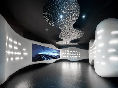 The Showroom, with its gently curving white walls, stands in marked contrast to the surrounding environment. It serves as a company display area which can be shown to visiting clients and also to provide users with an insight into ATS technology. Purity, precision, and the integration of recessed programmable light sources all create an artistic atmosphere designed to explore the limits of the imagination.