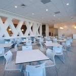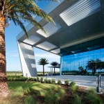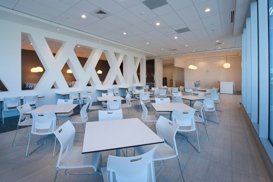 Designed and built in 11 months, this two-story office building supports two primary business fronts: regional corporate headquarters with 200 executive/professional staff and regional client contact center with associated parking for its 800 person staff. Notably, the expansive south facing canted metal and glazed curtain wall expression creates an iconic, branded landmark to the adjacent busy thoroughfare. The design drivers solved for bringing an approachable, human scale to an otherwise very large building. Inside, a 2-story atrium with a monumental terrazzo stair promotes vertical circulation and collaboration and welcomes visitors into a technology driven conferencing environment on the 2nd floor landing. Down the hall, along the façade, is the main employee dining area, with visual and physical connections to the exterior, employees are provided multiple dining options, allowing for them to either decompress in a quiet corner or engage with colleagues at one of the “big tables”. This area also contains a fitness center with views to the exterior, promoting health and well-being. From the monument sign at the street front to the hands free fixtures in the restrooms, great attention was paid to every detail on this campus.