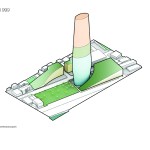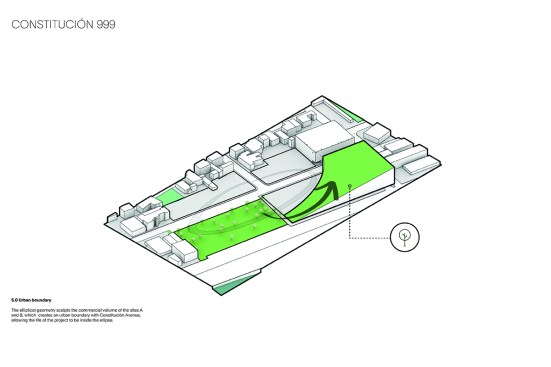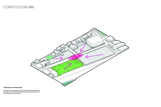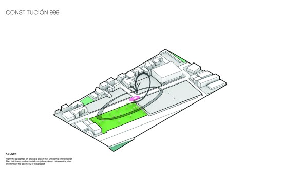 The masterplan, planned by Sordo Madaleno Arquitectos in two phases of development, contemplates the union of several plots surrounding the initial project for the creation of an action epicenter with an ellipse configuration, allowing to blur the urban boundaries and connect each new masterplan building with each other, and, as a result, the insertion of the central building into the interior of the ellipse.