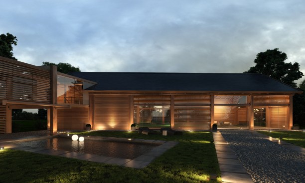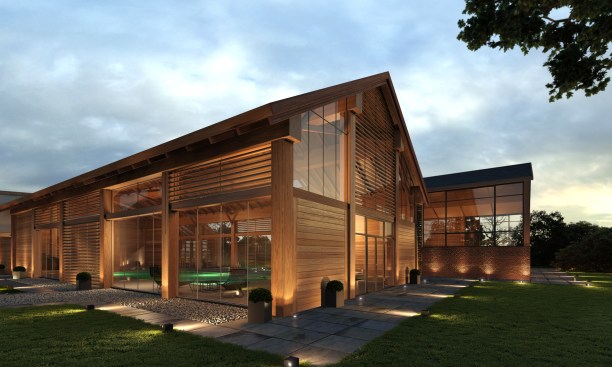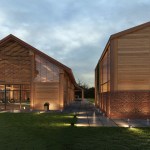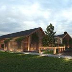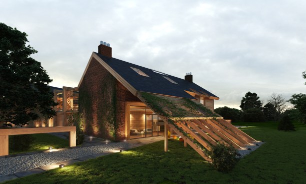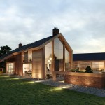 The architectural concept involved reconstruction of two existing barns and designing a new barn-style residential building forming a contemporary and at the same time traditional farmhouse area. Emphasis is put on lightness in proportions, balance between glazed surfaces and bearing structures, dialog between house interior and nature.