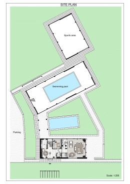 Two traditional farm buildings are planned to be turned into residential premises. The bigger one (333 sq. m.) will house bright indoor swimming pool with lounge zone nearby. Another one (almost 200 sq. m.) will be converted into sports area with table tennis, gym equipment and basketball court.
