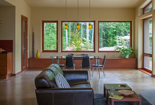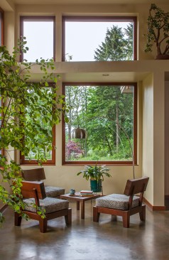 Essential, contemporary, and inviting defines this extremely energy efficient, Energy Star certified, Passive House design-inspired home in the Pacific Northwest. Designed for an active family of four, the one-story 3 bedroom, 2 bath floor plan offers tasteful aging in place features, a strong sense of privacy for both kids and parents, and a low profile that doesn’t impinge on the natural landscape. This house will heat itself in the dead of winter with less energy than it takes to run a hair dryer, and be sensual to live in while it does it. The forms throughout the home are simple and neutral, allowing for ample natural light, rich warm materials, and of course, room for the Guinea pigs makes this a great example of artful architecture applied to a genuine family lifestyle.Â