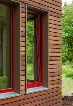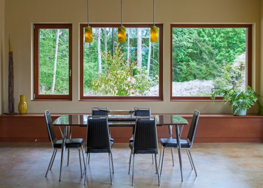 This ultra energy efficient home relies on extremely high levels of insulation, air-tight detailing and construction, and the implementation of high performance, custom made European windows and doors by Zola Windows. Zola’s ThermoPlus Clad line, which boasts R-11 triple glazing and is thermally broken with a layer of patented German Purenit®, was selected for the project. Natural daylight enters both from the tilt & turn and fixed windows in the living and dining areas, and through the terrace door that leads seamlessly outside to the natural landscape.