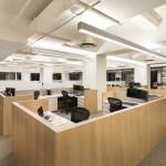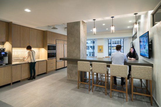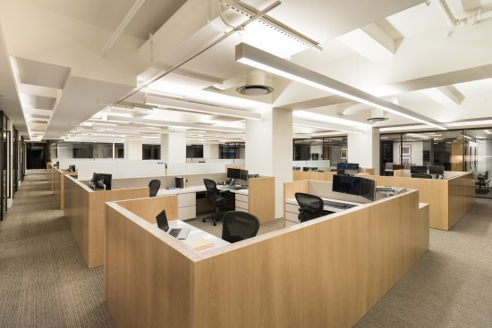 Their previous headquarters was scattered across many floors and featured numerous private offices and other real estate inefficiencies, and a stay in place solution was deemed impractical. Continental Grain’s major design priority for their new space was to change to a more open and modern style, with open plan workspaces, collaborative zones, and glass fronted private offices. For workstations, panels were lowered in order to increase a sense of visual connection. Ted Moudis Associates created a design aesthetic that took visual cues from the international style of classic modern design. Wood veneer panels and engineered stone top work surfaces add sophistication and timelessness to the design.