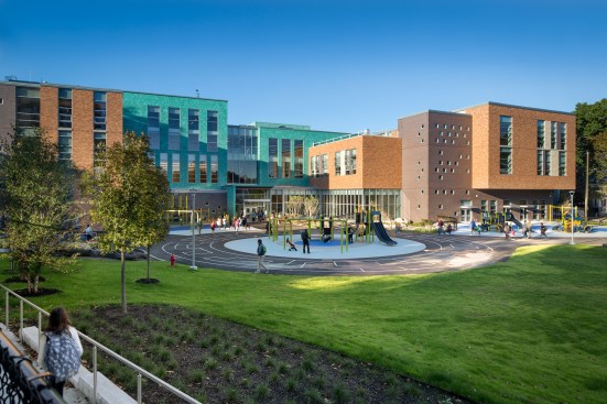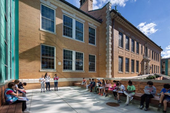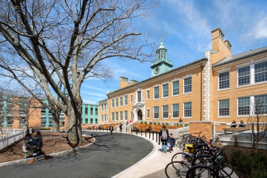 Prominently located in an urban neighborhood of Brookline, Massachusetts, the newly expanded Coolidge Corner School includes the preservation and restoration of a historically-significant 1913 Georgian building, with the addition of two new academic wings. The 1913 building, which carries great civic importance as the schoolhouse that John F. Kennedy and four of his siblings attended, has been repurposed and renovated to serve as a central visitor entrance, forming the symbolic heart of the school and centerpiece of the modern educational facility.