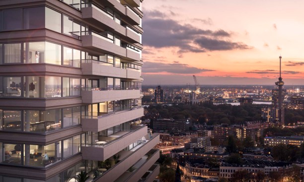 Rising to 150 metres, and with 50 floors, it will be the highest residential tower of the Rotterdam City centre.
