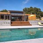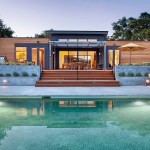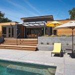 The clients chose this prefab home model thanks in large part to its intelligent connections to outdoor spaces. The outdoor features for the home take advantage of the home’s location in Healdsburg’s wine country, known for its rolling hills and beautiful vistas. A massive wraparound deck leads to the pool and provides a seamless indoor-outdoor connection to this home. The clients love that the outdoor deck allows them to enjoy the beauty of their Sonoma surroundings alone or with friends. Other outdoor features include a barbecue area, steel and aluminum trellis on the back deck, and cast-in-place concrete planters.