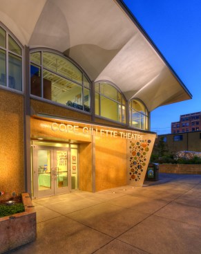 The shell of the existing building was preserved and updated to accommodate current seismic and energy codes. The existing exterior tile cladding as well as the roof system were left in place at the request of the historic commission. The interior was gutted and retrofitted to accommodate a state of the art theater. To keep costs down, ceilings were left exposed throughout the structure as was much of the new electrical and mechanical systems.