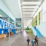 An architecture of integration allows for connection and transparency throughout the 240,000-sq-ft YMCA. An expansive central lobby unites different activity areas including a six-gym field house, children’s program areas, and the aquatics facility.