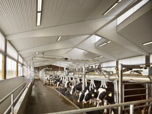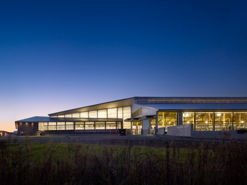 In order to provide design solutions that met or exceeded the project goals, the design proposed various solutions which work in harmony with site conditions and environmental considerations. To optimize cow comfort, the Freestall Barn was oriented to allow for maximum cross ventilation based on prevailing wind patterns. The Milking Center was incorporated at the end of the facility to maximize herd management while the classroom was placed on the second floor overlooking the milking parlor providing a firsthand view of the operations without compromising functionality.