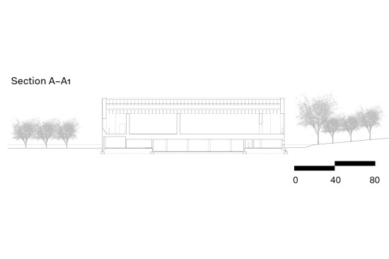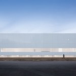 Its crystal white façade contrasts with Corning Incorporated’s original dark office building. A layer of laminated glass that seamlessly transitions from rain screen to translucent window provides views onto a campus green. At 150 feet long, the viewing area aligns precisely with the floor and ceiling. Within the rectangular building, curved concrete walls eschew museum norms of straight walls required for paintings and works on paper.