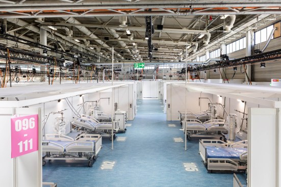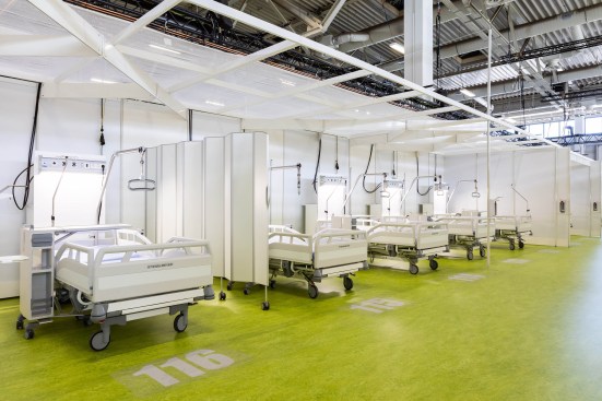 The focus lays on the functional quality of medical care without neglecting the needs of patients and employees. The Corona Treatment Centre is a hybrid between a modern hospital and a temporary field hospital, following the highest standards of hygiene and safety measures for treating highly infectious patients while focusing on the essential and vital elements of medical care.