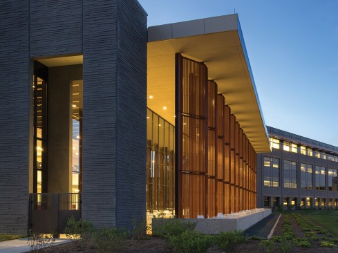 In response, the design team generated a simple figurative strategy interpreting the building as a series of layers, or slices of space. These layers progress from the lightest, most public, and open slice facing the inner campus to the east, westward to the densest, most private, and closed slice along the perimeter service road.