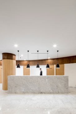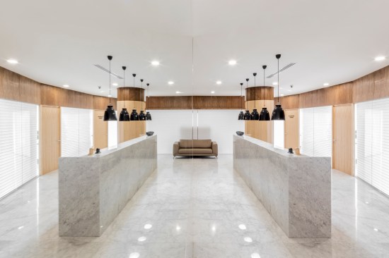 The project proposal represents an alliance between the facade, the columns and the general distribution of the space. Intertwine architectural planes help the flow of various spaces, which guide people through the offi¬ces. The furniture was specially designed to provide special character to each work area in harmony with the columns.