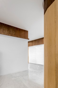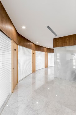 In the case of offi¬ces, privacy is resolved to the limit of fragility, achieved thanks to the rolling shades, which allow natural light to become protagonist by filtering light to the central working areas.