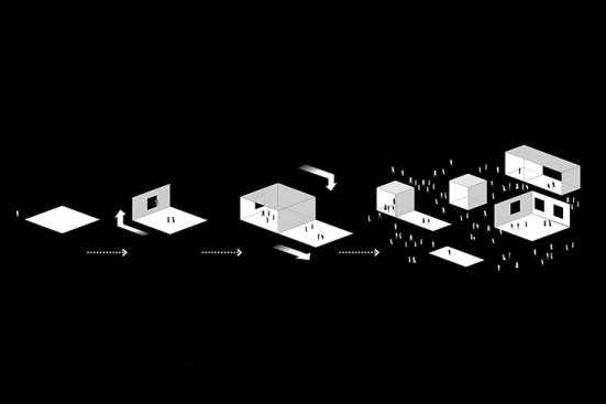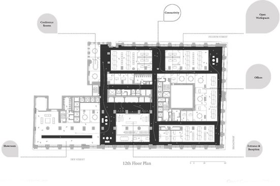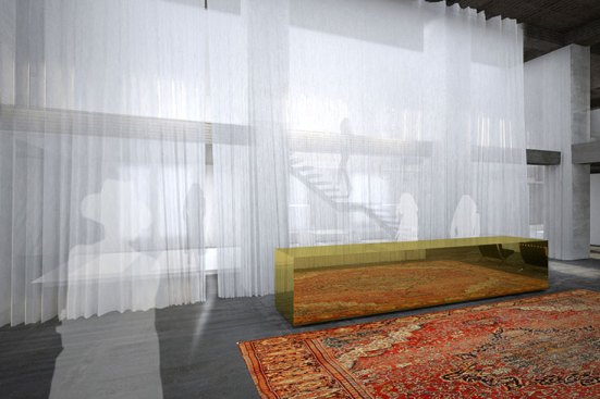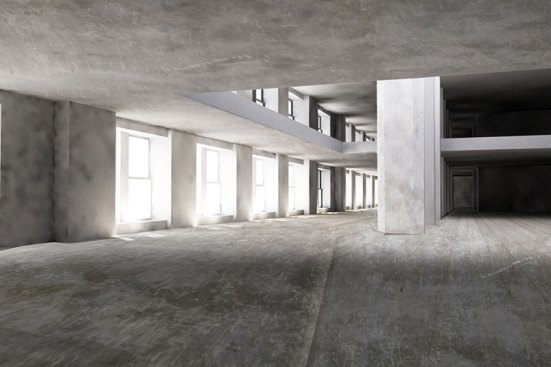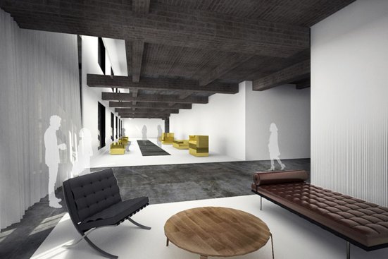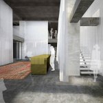 Our goal for the project was to translate into architectural elements what we read as the main characteristics of fashion, such as the juxtaposition between old and new, and the ever-changing brands’ development specifically its inherent temporariness. We achieved this by treating the existing raw space, a mix of concrete, terracotta and steel, as our permanent backdrop over which we locate the required functions as temporary islands. Our goal is to transmit the sense of a dynamic space that can continuously develop, based on the needs of the program. The floor planes can bend, wrap and ultimately enclose into the required conference rooms and offices. We aim to achieve an overall plan that is uniform and balanced, with no visual hierarchy. We then placed our work spaces around the center core so to leave the perimeter walls untouched and continuous.