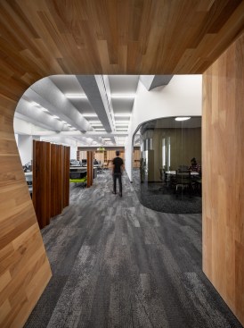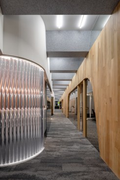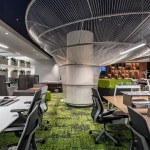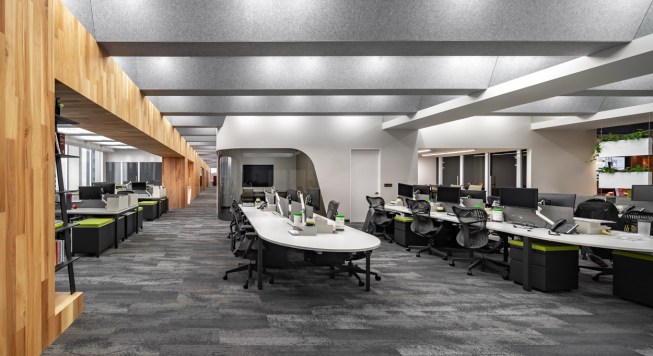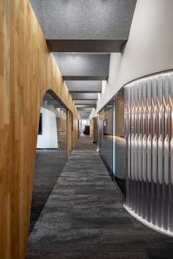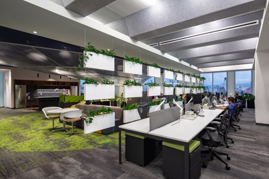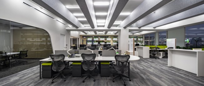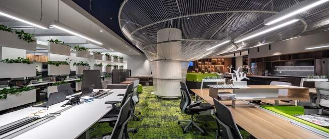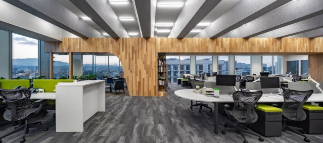 Con el bienestar de todos los colaboradores en mente se desarrollaron diferentes espacios dentro de las mismas oficinas para asegurar que todas las actividades se llevan a cabo en las condiciones más óptimas. Hay oficinas privadas con áreas de reunión formal en combinación con oficinas abiertas y áreas de reunión informal. Un muro verde marca la transición hacia la siguiente área en la que el diseño biofílico es el protagonista.