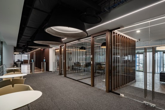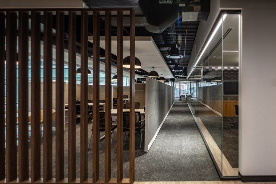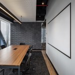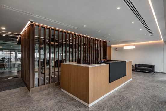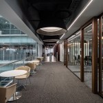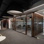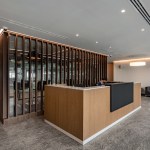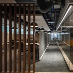 Some lattices and wall coverings were designed with wood like finishes that visually melt and at the time work as area´s divisions, and were located strategically so that the design flows with the user. These finishes relate to the ones of the floors. Vinyl wood like corridors integrate harmonizing with the textures on the walls and subtly marking the circulation and work areas.