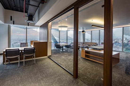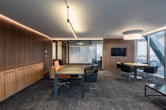 Committed with continuous innovation and transparency, based on the communication between leaders and work teams, we designed a concept with private offices next to the glass facades allowing light to go though to the operative area, creating an open space where all collaborators may live the space with transparency and the adequate privacy.