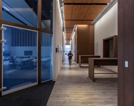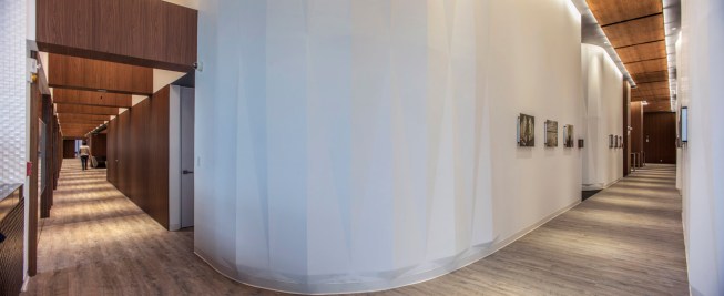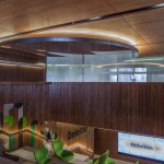 The materials were selected to meet LEED certification standards, FSC certified wood, recycled content trying to be 100% recyclable carpets, vinyl, elements on the walls etc.