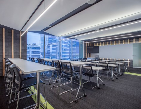 The Deloitte Excellence Centar has an approximate area of 5,000 sq m in Torre Diana in Mexico City. The program was structured to fully meet the needs of operating a training center for all staff. It is divided in two levels which are linked by a large space, a staircase that can also function as an open forum for 600 people.