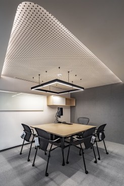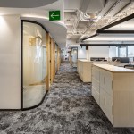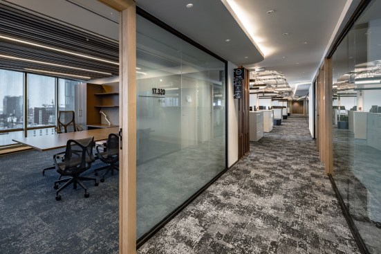 The main corridor located at the center works as the design axis dividing the concentration and collaborative spaces of the operating area, such as private offices for managers and directors and workstations. The operating areas are next to the façade ensuring the larger quantity of natural light into the interior and providing with best views for all.