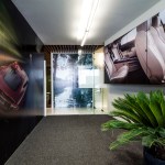 The project for the corporate offices of Land Rover – Jaguar is located in the 7th level of a building in Mexico City. The floor plan is formed by two offset rectangles. A main axis organizes the visitors flow and joins the lobby with the meeting rooms. This same axis leads to the next sections where the working areas —marketing, directors, finances and services— were located. Lighted niches exhibiting branding, memorabilia and the awards of the different brands decorate and give ambiance to the space.