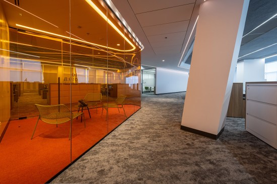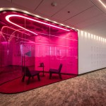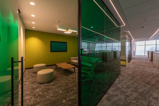 El barrio (the quarter) is the space that forms primarily the typical floors accommodating work equipment sharing a group of tools for the daily activities such as: printing service, archive, storage and wellness rooms (rooms for nursing and wellness). Depending on the individual, department and team needs the level of flexibility may be selected to better suit their activities. It has three kind of working spaces: private office, set workstation and hoteling workstation. There are also single workstations in open areas where spaces for formal and informal collaboration were designed, as well as spaces for concentration with different finishes, colors and furniture giving each typology a clear character. With this the routine and monotony of daily tasks is broken supporting the user’s health and wellbeing.