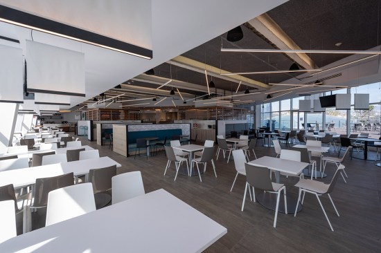 La Plaza (the square) is located in the access level, is the company`s employees, visitors, and partners meeting point where the culture and biggest asset of the organization: the people, stands out. It is formed by reception, meeting room for internal and external visitors, telepresence center, canteen, technical service area “tech life”, bank branch, medical service and a grand terrace with an extraordinary landscape design.
