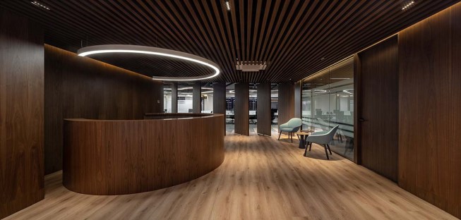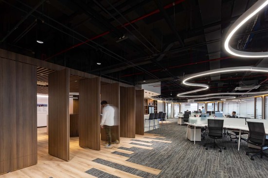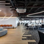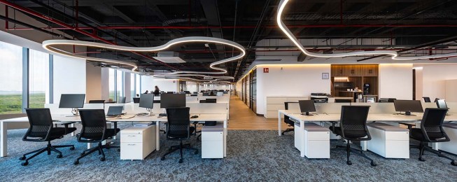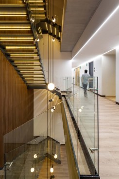 The lighting that is inspired by the curves of the cenotes, creates dynamic and gentle shapes that help us feel a more open and uncovered space, helping with a saving of 80% since they all work with LED technology. The entire project prioritizes the social areas and work areas by means of changing materials and forms in lighting, seeking to generate a collaborative environment at all levels.