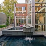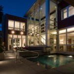 The house was designed to provide privacy and solitude for the Owners by creating a strong connection between interior and visually protected exterior spaces. Two courtyards act as organizing elements and the focus for the interior. Privacy is achieved by the arrangement of building forms which block vision from the street. Courtyard walls are defined by planes of glass, cedar and wood panels.