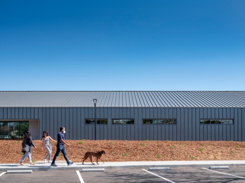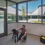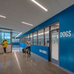 The County’s new Animal Services Center has capacity for 54 dogs and 90 cats, with spaces for other types including small animals like rabbits, guinea pigs and birds. To house and highlight larger livestock animals, a barn is situated along the main building frontage, increasing its visibility. Prominent interior glass walls and a central courtyard in the state-of-the-art 36,000-square-foot building highlight animals and community engagement spaces. Taking a distinct departure from traditional shelter design, dog kennels are organized around an outdoor landscaped courtyard named “The Park.” Together with surrounding “Get Acquainted” pods, the experience offers a bright and open area to meet and greet potential pets in a natural park-like environment.