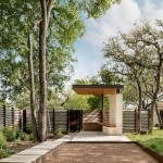 A potting pavilion and garden occupy the “neck” of a peculiar guitar shaped lot while various wall offsets embrace the curve of the cul-de-sac.