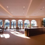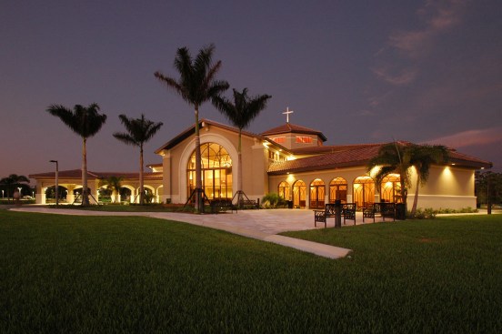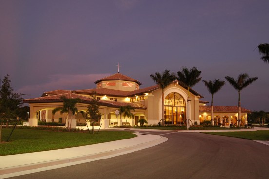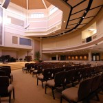 Project features include state of the art digital sound and lighting control system for the entire facility as well as infrastructure to support a future Educational Building. Redevelopment of the site includes relocation of parking lots and the relocation of an existing lake to another area of the site.