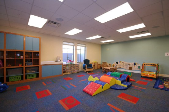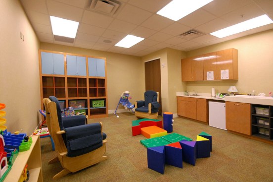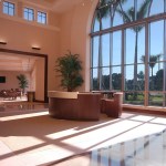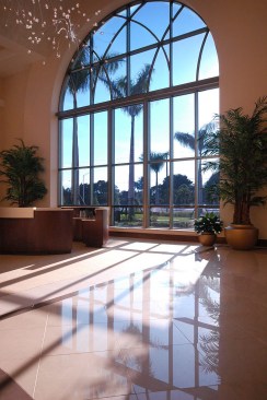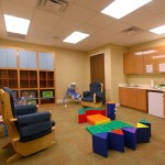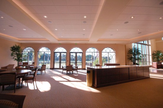 This 35,000 square foot facility includes a large reception lobby that encourages fellowship activities and includes a connection to a beverage and food kitchen. Visitors are greeted by a volunteers located in a large reception desk area.