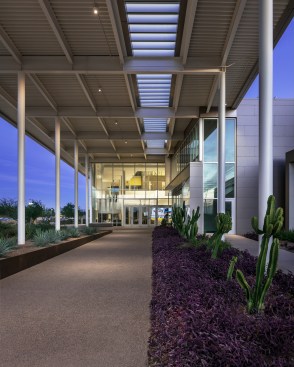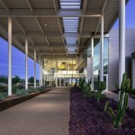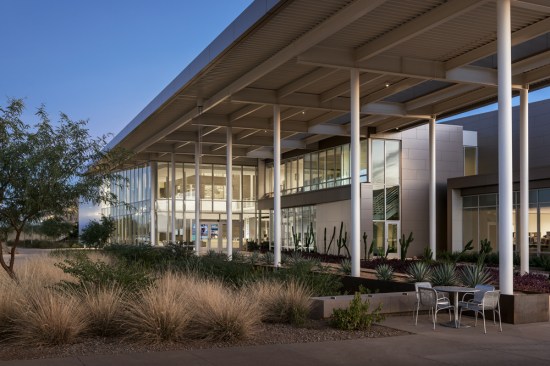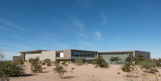 The new 78,000 sf Coyote Center will create an iconic landmark gateway to the Chandler-Gilbert CC campus, bringing together athletics and academic wellness department and enrollment services into a comprehensive facility. Integrated into the desert environment, the new facility will use earthworks, courtyards, shade terraces and sunscreens to create an energy-efficient, high performance design. The multi-purpose gym design includes bleacher seating for 1,000 people to attend various basketball and volleyball games, as well as campus and community events. The facility includes a Sports Performance Center for strength and conditioning classes and a Human Performance Lab for exercise science and strength nutrition with specialized equipment for metabolism testing. Other program spaces include multi-purpose rooms, team locker rooms for individual men’s and women’s gym and field sports, training room, equipment room and faculty and coaches offices. Opsis is the design architect with DFDG servings as the architect of record.