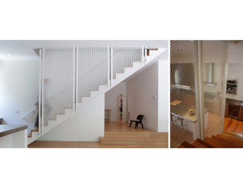 Using a palette of simple materials, and through the creation a series of interlocking living spaces, we worked to achieve rich, playful qualities throughout the house. Careful placement of windows and interior openings allows each space to receive natural light, further reinforcing the spatial flows of the open plan.