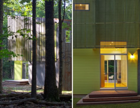 This box, wrapped in a skin of solid and perforated cor-ten steel acts as a visual screen, rain screen, canopy, and sunshade. Spray foam insulation, tightly sealed ducts, low-e glazed windows, and Energy Star appliances contribute to the home’s energy conservation. Despite the fact that their new house is 800 feet larger than their previous house, the clients report that their energy bills are, on average, 30 percent lower.