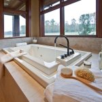 When guests step inside the home, they’re immediately greeted by an eight-foot-tall double-sided fireplace, detailed with racing horses around the edges (a nod to the couple’s love of horse racing). Moving past the sunken living room, the kitchen features high-end appliances, granite countertops, and a built-in coffee maker (an idea years ahead of its time). Up the rich cherry stairs, the luxurious master bathroom has a sauna, steam shower, and infinity tub, perfect for the athletic couple to unwind.
